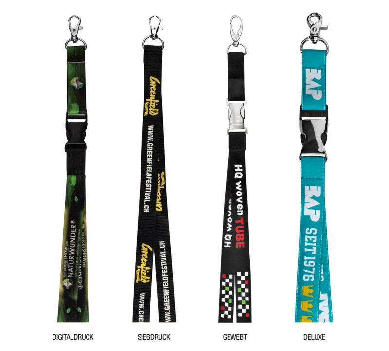 Nenn es wie du willst. Lanyard, Keyholder, Umhängeband, Schlüsselband oder Badgeholder. Wir haben es im Sortiment und machen deine Artwork drauf. Das geht mit Siebdruck, Thermo-/ Transferdruck, gewebt oder mit zwei aufeinander genähten Bändern.